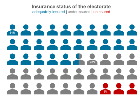 - 94% of voters in Oregon have health insurance; however, 43% of the electorate is underinsured. This leaves nearly half of voters without adequate insurance coverage. 38% of Oregonians report that they have delayed or canceled medical treatments because the care was not covered by insurance, with 37% reporting this was due to high out of pocket cost.